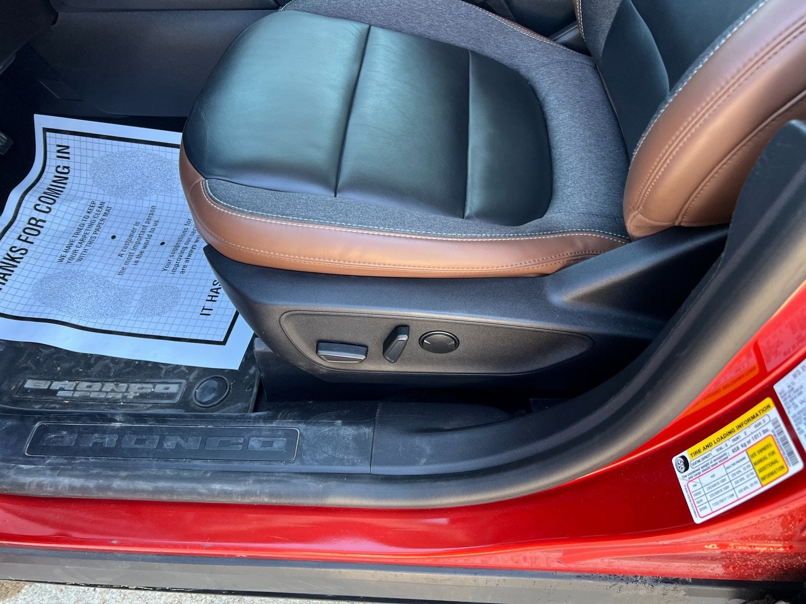 This 2023 Ford Bronco Sport Outer Banks in Hot Pepper Red Tinted Clearcoat includes the following features: 1.5L EcoBoost 8-Speed Automatic 4WD Equipment Group 300A, Ford Co-Pilot360 Assist+ (Evasive Steering Assist, Intelligent Adaptive Cruise Control w/Stop & Go, and Voice-Activated Touchscreen Navigation System), Tech Package (HD Radio, Universal Garage Door Opener (UGDO), and Wireless Charging Pad), 4G LTE Wi-Fi Hotspot Credit, 6 Speakers, Air Conditioning, AM/FM radio: SiriusXM, AM/FM Stereo, Auto-dimming Rear-View mirror, Automatic temperature control, Compass, Driver door bin, Driver vanity mirror, Front dual zone A/C, Power door mirrors, Rear window defroster, SiriusXM, SYNC 3 Communications & Entertainment System, 3.80 Axle Ratio, 4-Wheel Disc Brakes, ABS brakes, Alloy wheels, Auto High-beam Headlights, Brake assist, Cargo Management System, Delay-off headlights, Dual front impact airbags, Dual front side impact airbags, Electronic Stability Control, Emergency communication system: SYNC 3 911 Assist, Engine Block Heater, Four wheel independent suspension, Front & Rear Floor Liners, Front anti-roll bar, Front Bucket Seats, Front Center Armrest, Front fog lights, Front License Plate Bracket, Front reading lights, Fully automatic headlights, Heated door mirrors, Heated front seats, Heated steering wheel, Illuminated entry, Knee airbag, Leather Trimmed Heated Sport Contour Bucket Seats, Low tire pressure warning, Memory seat, Occupant sensing airbag, Outside temperature display, Overhead airbag, Overhead console, Painted Shadow Black Roof, Panic alarm, Passenger door bin, Passenger vanity mirror, Power driver seat, Power Moonroof, Power passenger seat, Power steering, Power windows, Radio data system, Rain sensing wipers, Rear anti-roll bar, Rear Parking Sensors, Rear reading lights, Rear seat center armrest, Rear window wiper, Remote keyless entry, Security system, Speed control, Speed-sensing steering, Speed-Sensitive Wipers, Split folding rear seat, Steering wheel mounted audio controls, SYNC 3/Apple CarPlay/Android Auto, Tachometer, Telescoping steering wheel, Tilt steering wheel, Traction control, Trip computer, Variably intermittent wipers, and Wheels: 18 Ebony Black-Painted Aluminum. Recent Arrival! Odometer is 984 miles below market average! 25/28 City/Highway MPG