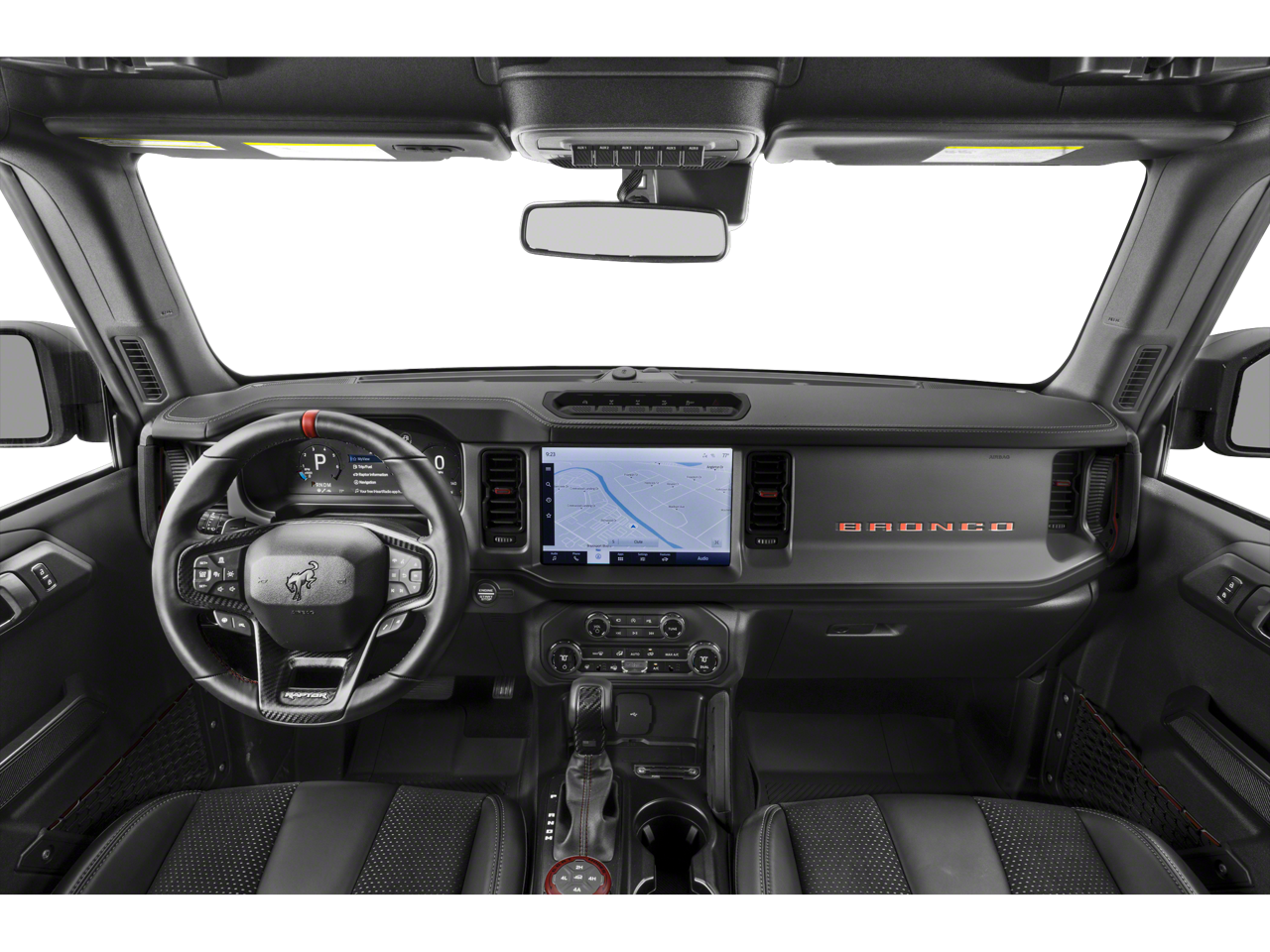 This 2023 Ford Bronco Raptor in Shadow Black includes the following features: 3.0L EcoBoost V6 10-Speed Automatic 4WD Equipment Group 374A Lux Package, Lux Package (10 Speakers w/Subwoofer, 2 Smart Charging USB Ports In Dashboard, Adaptive Cruise Control, Evasive Steering Assist, Heated Steering Wheel, Radio: B&O Sound System by Bang & Olufsen, Universal Garage Door Opener, Wireless Charging Pad, and Connected Built-In Navigation), 7 Speakers, AM/FM radio: SiriusXM with 360L, AM/FM Stereo, Connected Navigation, Convertible HardTop, Heated door mirrors, Navigation system: Connected Navigation, Off-Road Assistance Kit (DIO), Power door mirrors, Radio data system, Second Row Panel Roof Bag Storage (DIO), SiriusXM Radio w/360L, SYNC 4, Turn signal indicator mirrors, Upgraded Raptor Graphic, 4-Wheel Disc Brakes, 4.7 Axle Ratio, ABS brakes, Air Conditioning, Alloy wheels, Auto High-beam Headlights, Auto-dimming Rear-View mirror, Automatic temperature control, Brake assist, Compass, Convertible roof lining, Delay-off headlights, Driver door bin, Driver vanity mirror, Dual front impact airbags, Dual front side impact airbags, Electronic Stability Control, Emergency communication system: 911 Assist, Exterior Parking Camera Rear, Front anti-roll bar, Front Bucket Seats, Front Center Armrest, Front dual zone A/C, Front fog lights, Front reading lights, Front wheel independent suspension, Fully automatic headlights, Glass rear window, Hard Top Sound Deadening Headliner (DISC), Heated front seats, Illuminated entry, Integrated roll-over protection, Interior Carbon Fiber Pack 6, Leather Shift Knob, Low tire pressure warning, Marine Grade Vinyl Bucket Seats, Occupant sensing airbag, Outside temperature display, Overhead airbag, Overhead console, Panic alarm, Passenger door bin, Passenger vanity mirror, Power steering, Power windows, Rear anti-roll bar, Rear seat center armrest, Rear window defroster, Rear window wiper, Remote keyless entry, Security system, Speed control, Split folding rear seat, Steering wheel mounted audio controls, Tachometer, Telescoping steering wheel, Tilt steering wheel, Traction control, Trip computer, Variably intermittent wipers, Voltmeter, Wheel Lock Kit (DIO), and Wheels: 17 Black High Gloss-Painted Aluminum. Recent Arrival! Odometer is 5379 miles below market average!