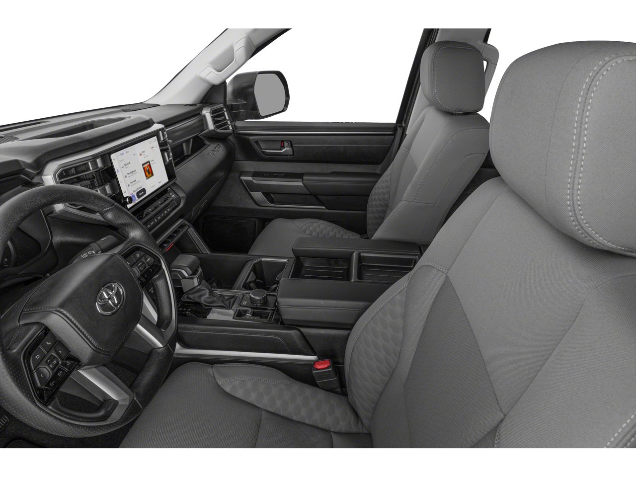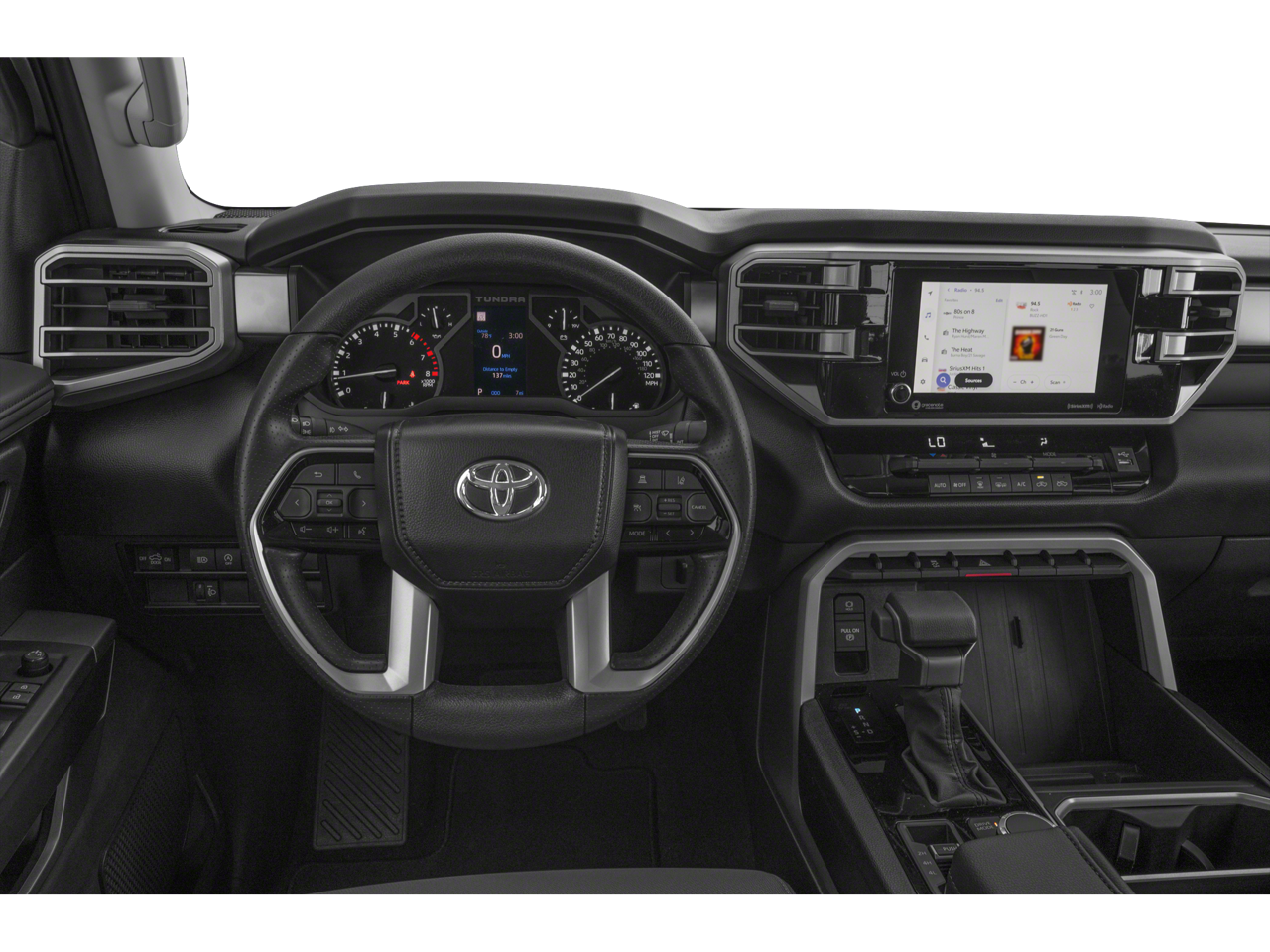 This 2024 Toyota Tundra SR5 in Silver includes the following features: 3.4L V6 10-Speed Automatic 4WD 4WD, 4-Way Adjustable Front Bucket Seats, 4-Wheel Disc Brakes, 9 Speakers, ABS brakes, Air Conditioning, AM/FM radio: SiriusXM, Apple CarPlay/Android Auto, Automatic temperature control, Bumpers: body-color, Driver door bin, Driver vanity mirror, Dual front impact airbags, Dual front side impact airbags, Emergency communication system: Safety Connect (10-year trial), Front anti-roll bar, Front reading lights, Front wheel independent suspension, Heated door mirrors, Illuminated entry, Knee airbag, Low tire pressure warning, Occupant sensing airbag, Outside temperature display, Overhead airbag, Overhead console, Passenger vanity mirror, Power door mirrors, Power steering, Power windows, Radio data system, Radio: Audio Multimedia System, Rear reading lights, Rear step bumper, Rear window defroster, Remote keyless entry, Speed-sensing steering, Steering wheel mounted audio controls, Tachometer, Telescoping steering wheel, Tilt steering wheel, Traction control, Trip computer, Voltmeter, 18 Alloy Wheels, 3.31 Axle Ratio, Alloy wheels, Auto High-beam Headlights, Brake assist, Delay-off headlights, Electronic Stability Control, Exterior Parking Camera Rear, Fabric Seat Trim (FB), Front Bucket Seats, Front Center Armrest, Front fog lights, Fully automatic headlights, Panic alarm, Passenger door bin, Security system, Speed control, Split folding rear seat, and Variably intermittent wipers. Recent Arrival!